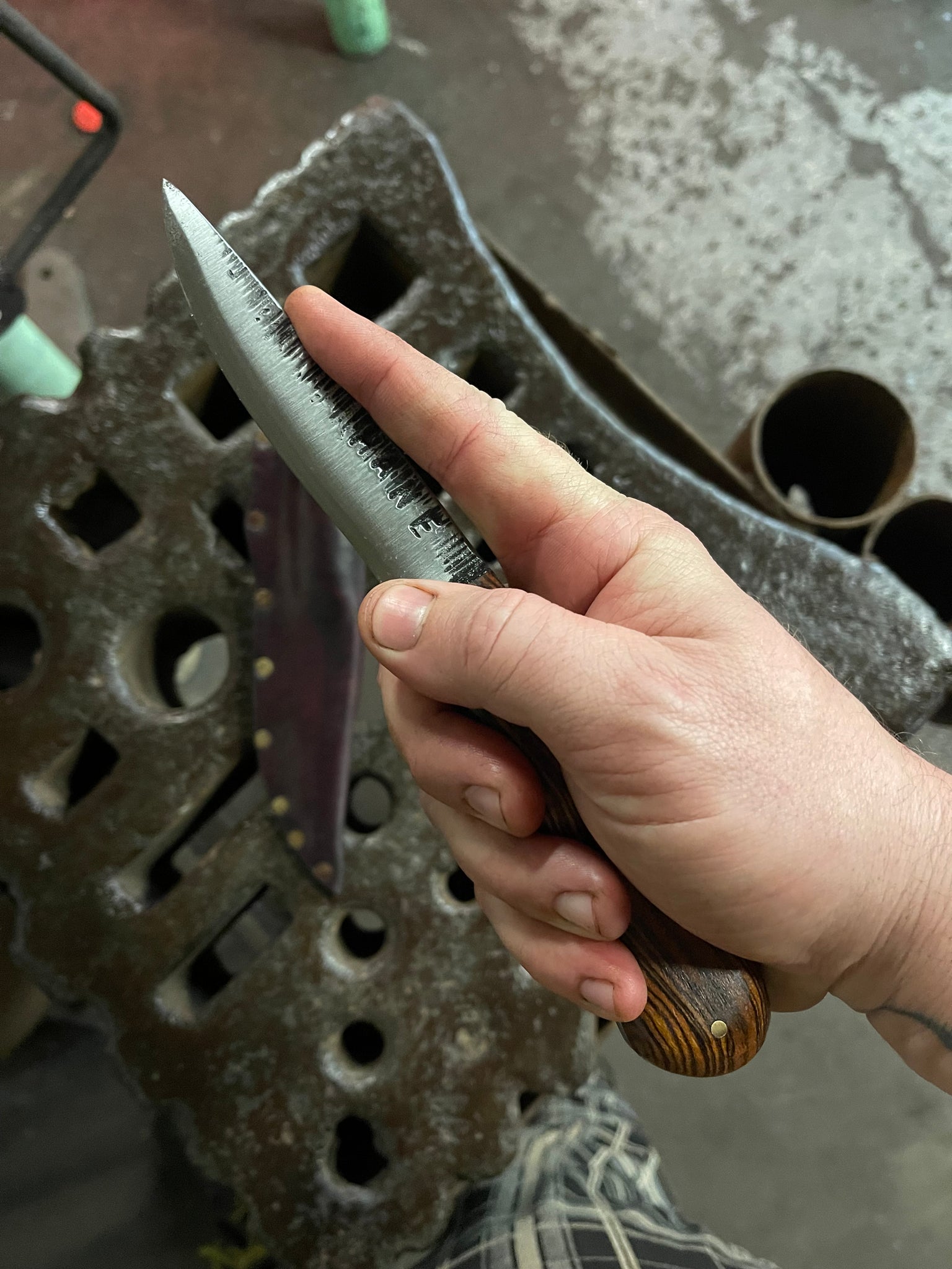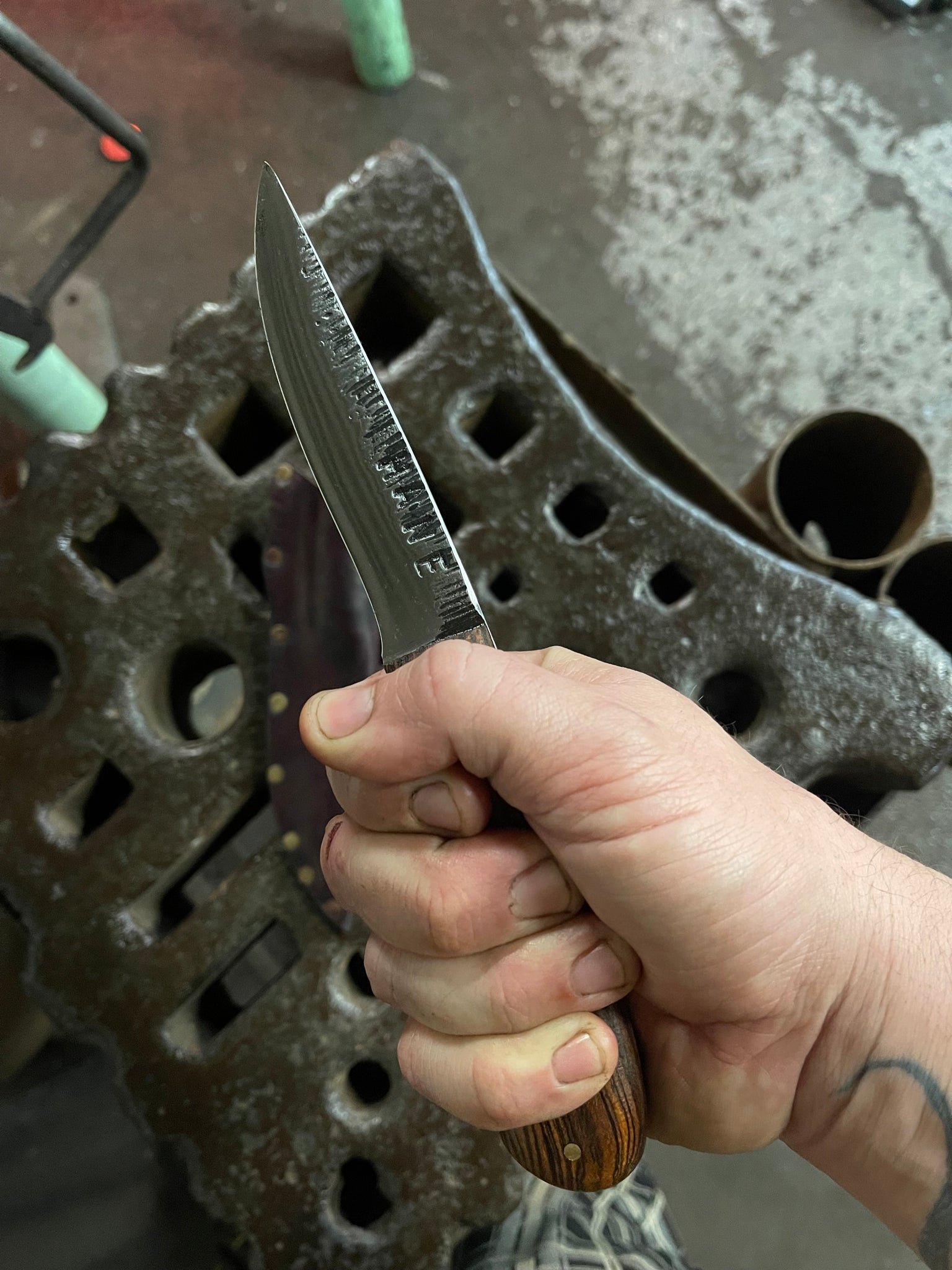 I harden my knives using a computer controlled kiln. Using this tool allows me to get maximum edge retention out of a given piece/type of steel.