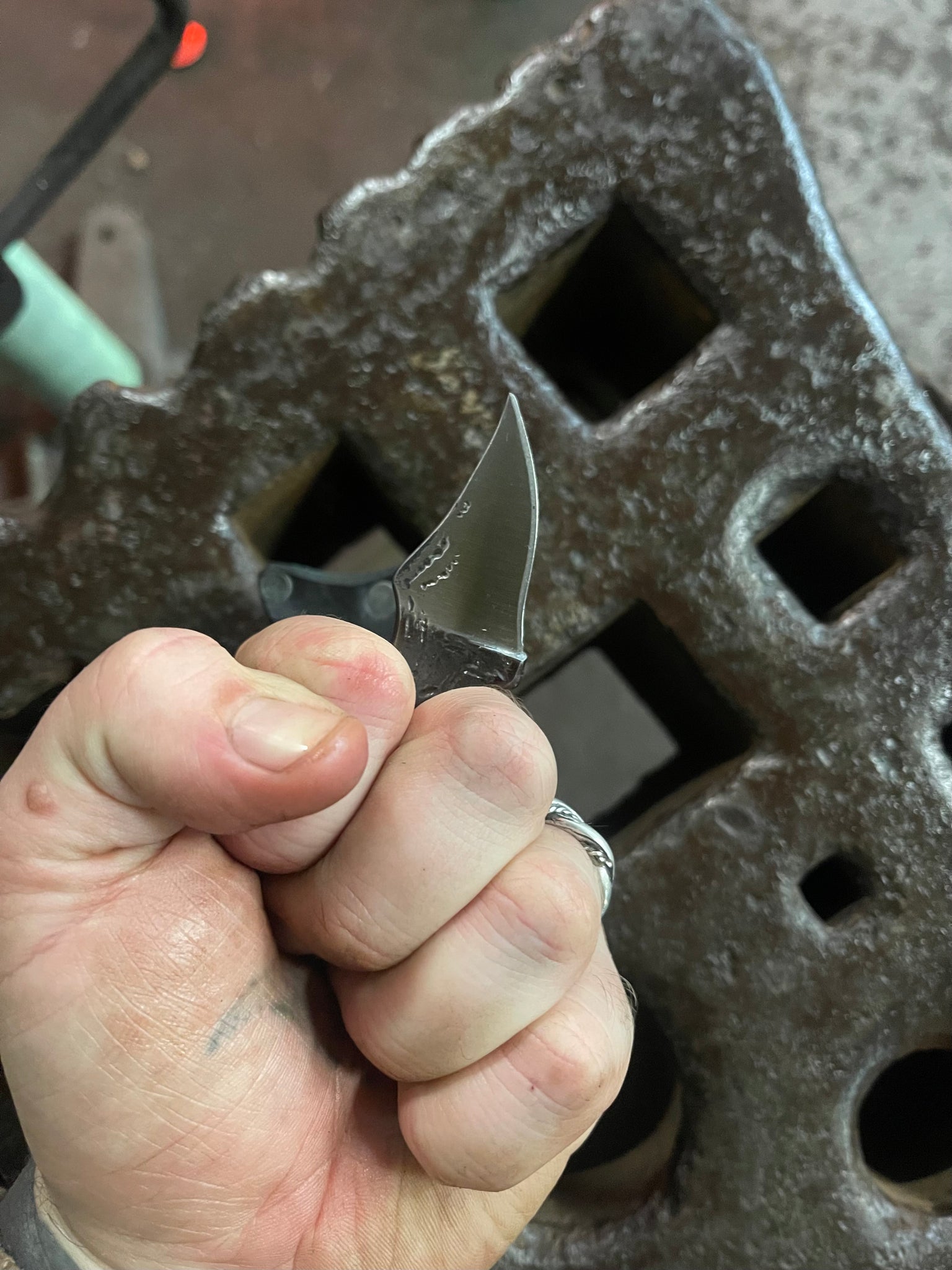 Solid 80CRV2 fire textured knife! The Lil’ Buddy is a wonderful friend. Usable in a variety of grips, it is a fantastic tool for everyday utility tasks for which you need a blade. The texture is created painstakingly with a fine tip brazing torch. It is both beautifully organic, and aids mightily in grip.