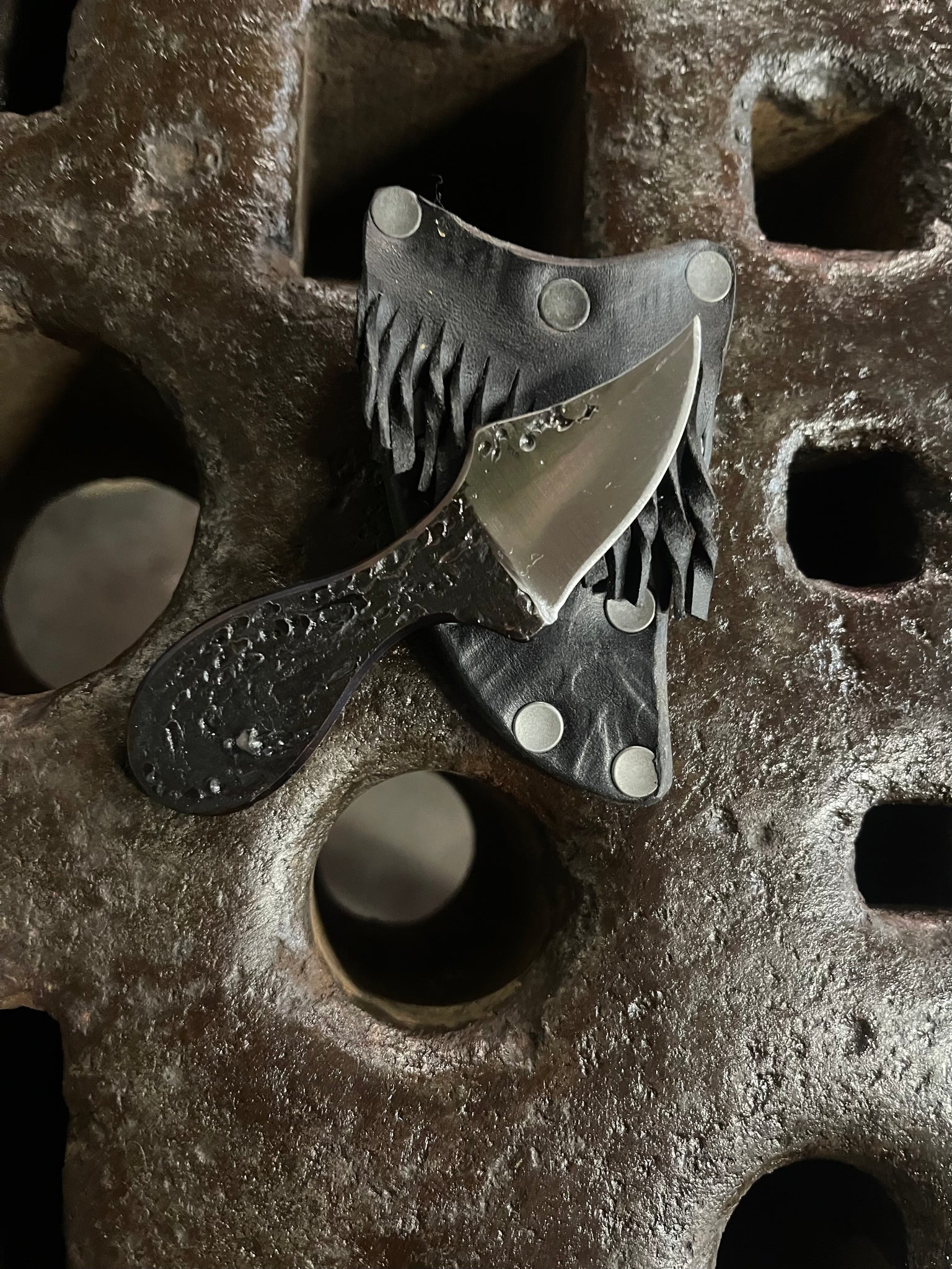 Solid 80CRV2 fire textured knife! The Lil’ Buddy is a wonderful friend. Usable in a variety of grips, it is a fantastic tool for everyday utility tasks for which you need a blade. The texture is created painstakingly with a fine tip brazing torch. It is both beautifully organic, and aids mightily in grip.