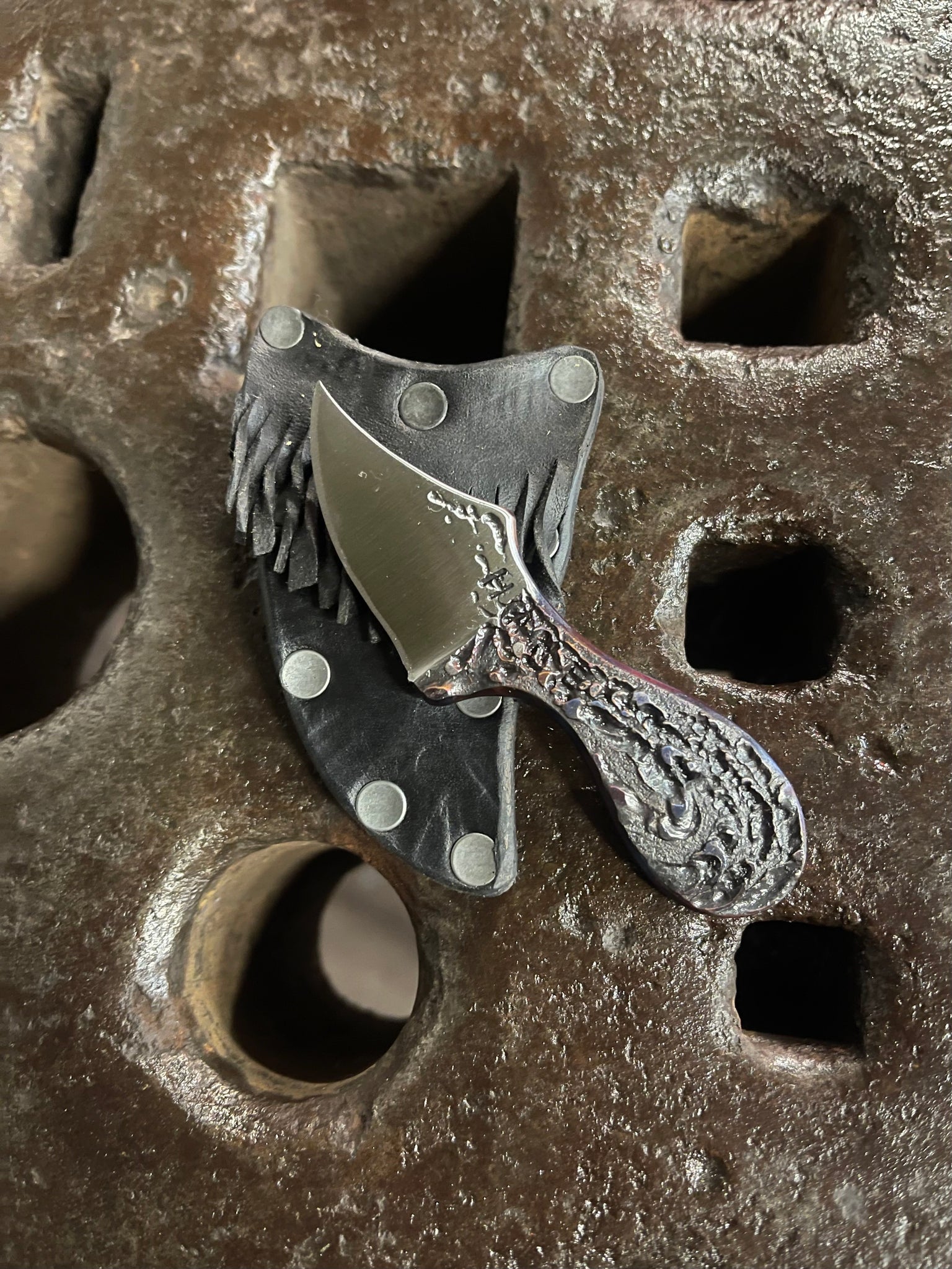*AVAILABLE* Lil’ Buddy EDC neck / pocket knife. Solid, flame textured steel. LB4