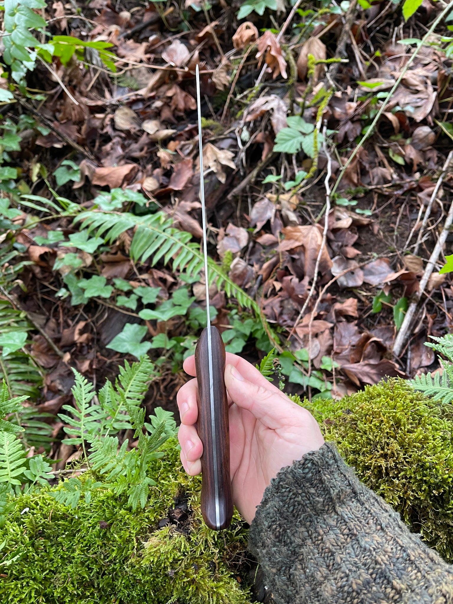Created from L6 steel sourced from upcycled antique lumber mill saw blades from the PNW Timberlands. L6 is tough and flexible, and holds a particularly keen edge.