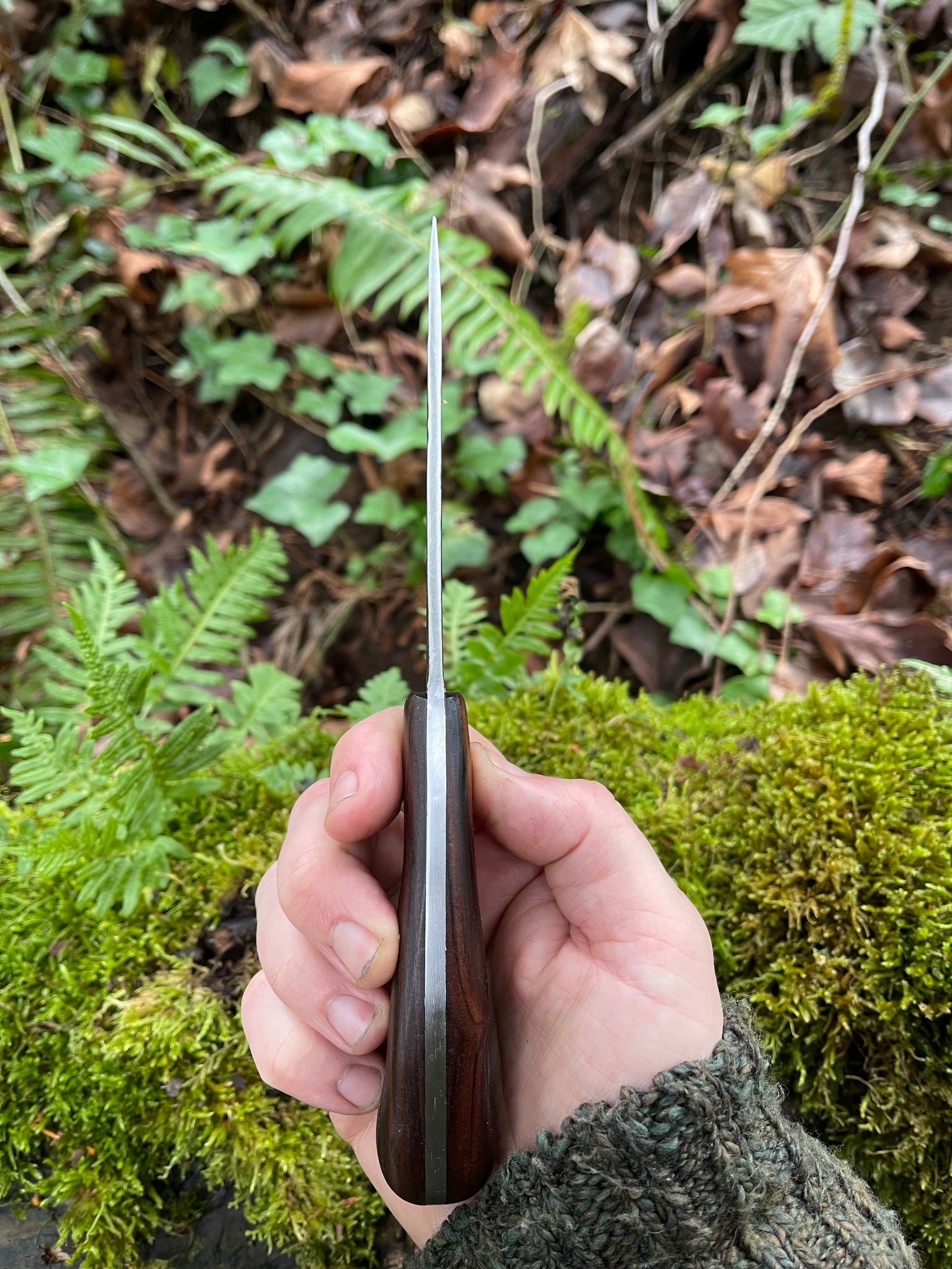 The Corsair is as versatile and vicious as the seaborn marauders it is named after. The gentle curve of the profile lends itself perfectly to controlled, deep slices. It is wonderful for butchery and skinning, sturdy and sharp. Great for feather sticks, strong enough to be batoned through logs and bones. This blade style was my every day carry for years.