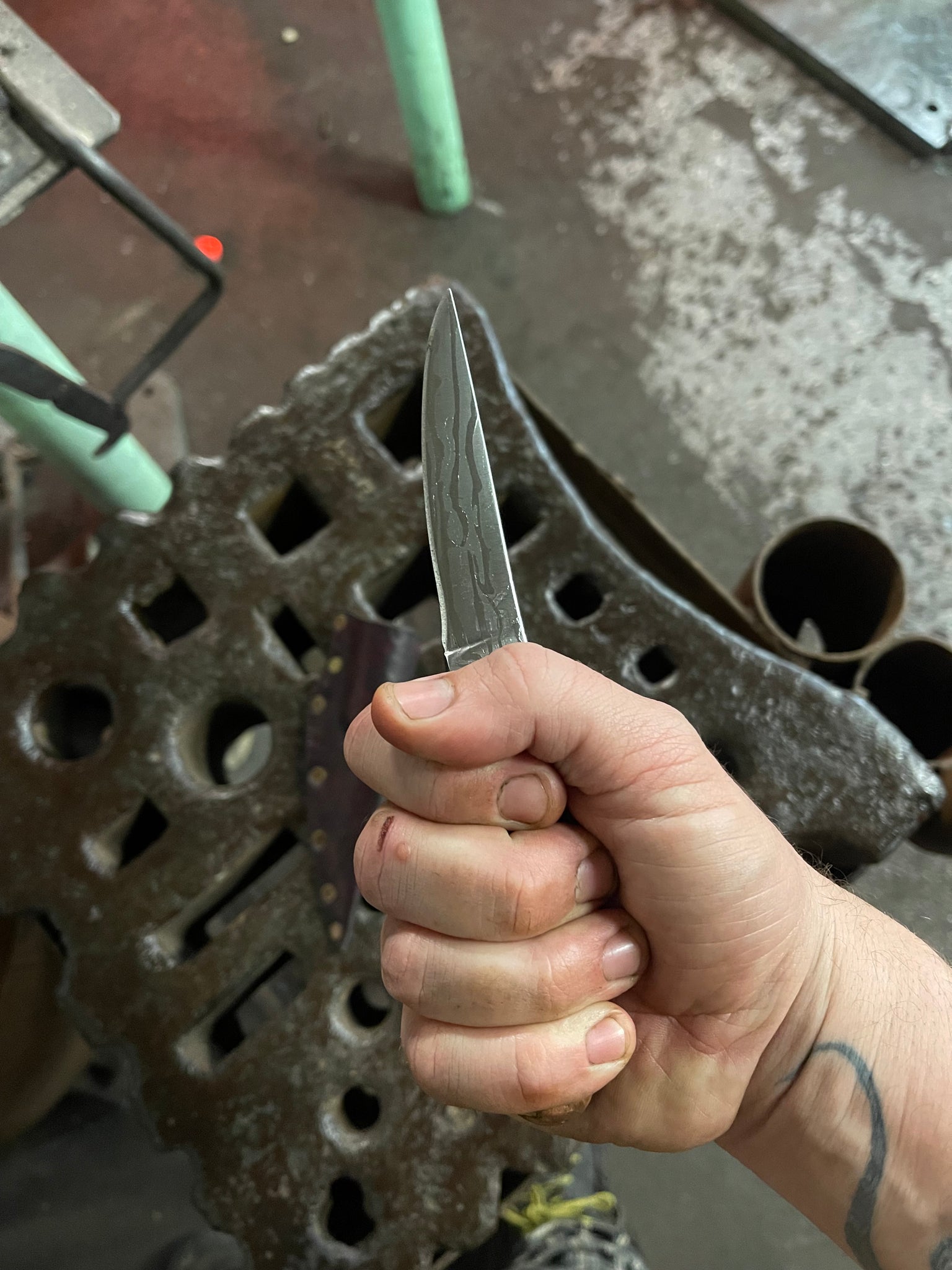 I harden my knives using a computer controlled kiln. Using this tool allows me to get maximum edge retention out of a given piece/type of steel.